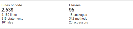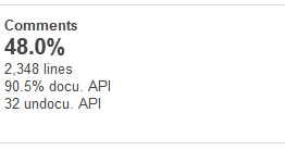 Note the code complexity to be very low in terms of methods as well as class. This indicates that code is easy to read, understand and learn. Also, the code has decent documentation of 48%.