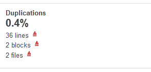 Note the duplications value of 0.4%. This is outstanding. Also, there were no blocker or critical rules violations.